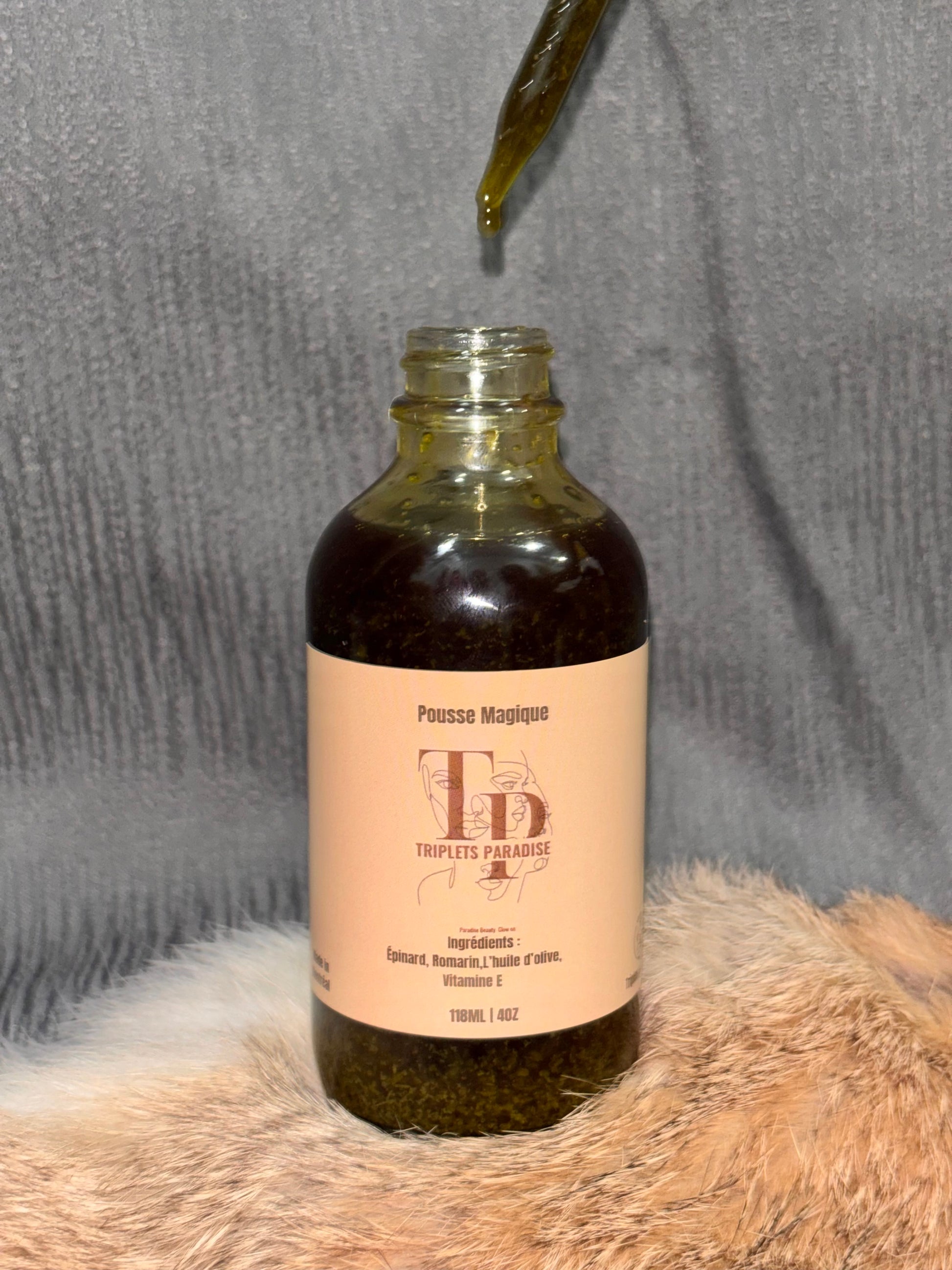 Pousse Magique est une huile naturelle conçue pour nourrir intensément vos cheveux tout en renforçant leur structure. Cette formule experte aide à prévenir la casse, favorisant ainsi une chevelure plus résistante et en pleine santé. Idéale pour ceux qui cherchent à stimuler la croissance capillaire grâce à des ingrédients soigneusement sélectionnés pour leurs bienfaits réparateurs et protecteurs.